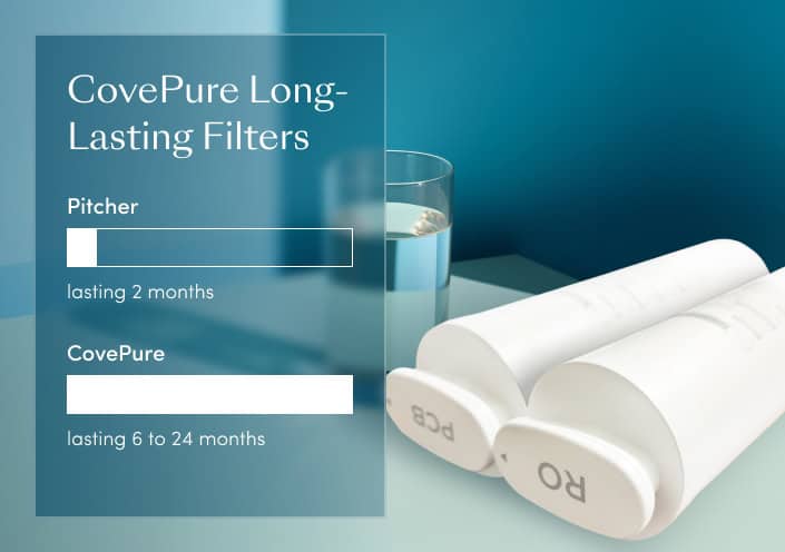 Enjoy the convenience of long-lasting filters that don’t require frequent changing. In fact, CovePure’s reverse osmosis filter can be used for up to an industry-leading 24 months. Our durable filters make maintenance a breeze!